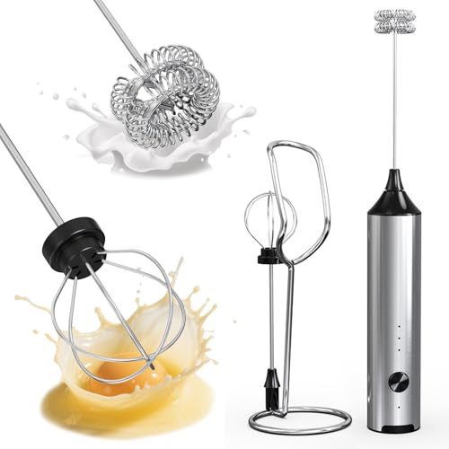 edihome, Milk Frother Electric Handheld, Electric Milk Frother for Coffee, Handheld Milk Frother for Cappuccino Latte, Rechargeable or Battery Powered, Powerful and Quiet (Batteries, Grey)