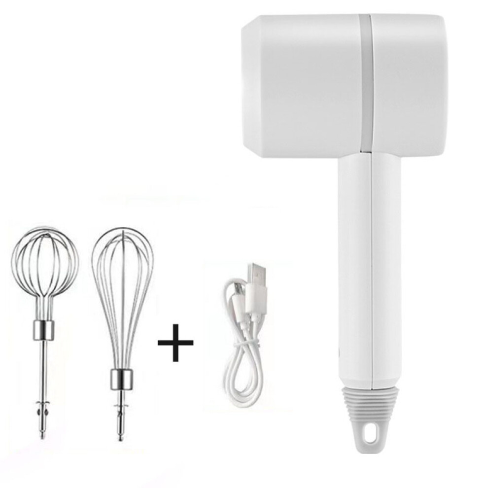 Cordless Double Head Electric Hand Mixer Baking Nonrust Steel Whisks 1200mAh Rechargeable Battery Compact Design White