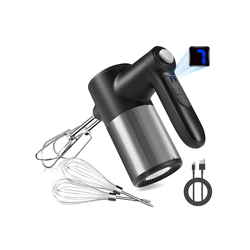 Cordless Hand Mixer,Digital Display 7 Speed Rechargeable Electric with 4 Stainless Steel Attachments,for Baking,Eggs