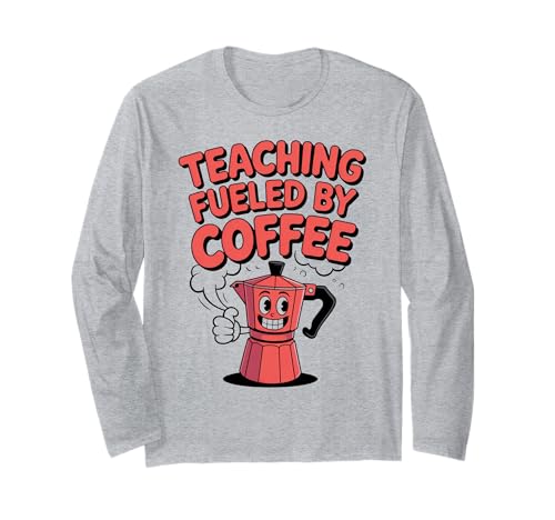 Teaching Fueled by Coffee - Fun Educator Moka Pot Design Long Sleeve T-Shirt