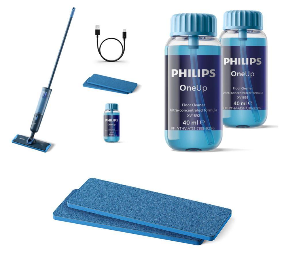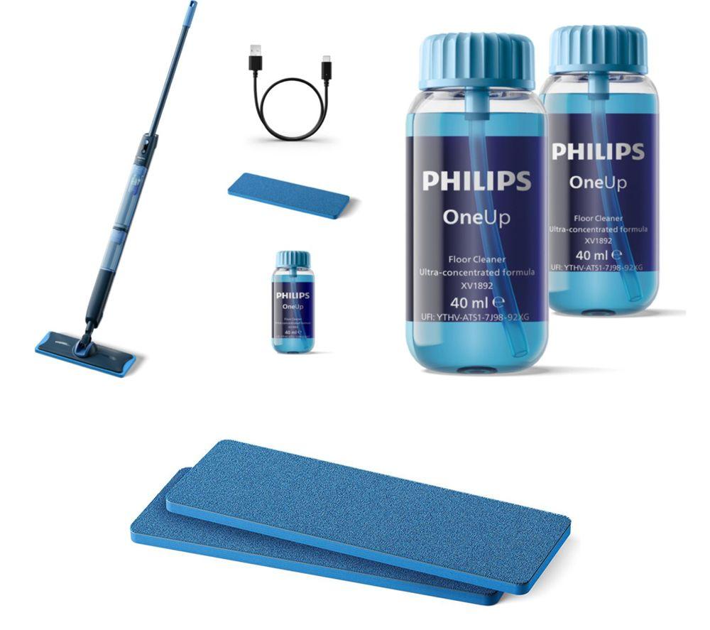 Philips OneUp 3000 Series Electric Mop + Floor Cleaner + Replaceable Pads Bundle