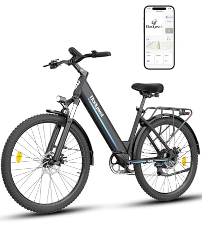 Bodywel A26 26'' City Electric Bike, Electric Bicycle with 36V 13.5Ah Removable Battery, Max Range of 65KM, 4.5-inch LED Display, APP, Mountain Electric E-Bike for Adults (Black)