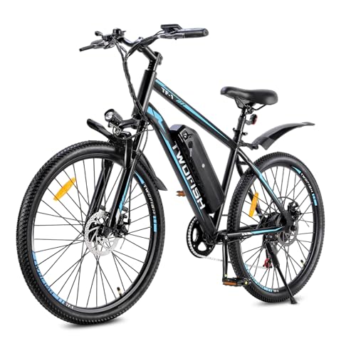 TWOFISH Electric Bike, 26" Electric Mountain Bike for Adults with 36V 15Ah Battery Max Range 100 KM 25KM/H 3 Riding Mode 7 Speed E Bike with Disc Brakes LED Display, TF-1 (Black-Blue)