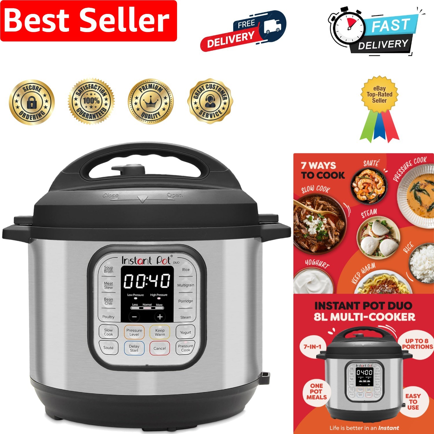 Instant Pot Duo 7-in-1 Electric Multi-Cooker 8L - Brushed Stainless Steel, Large Pressure Cooker, Slow Cooker, Rice Cooker, Sauté, Yoghurt Maker, Food Steamer Pot and Food Warmer, Dishwasher Safe