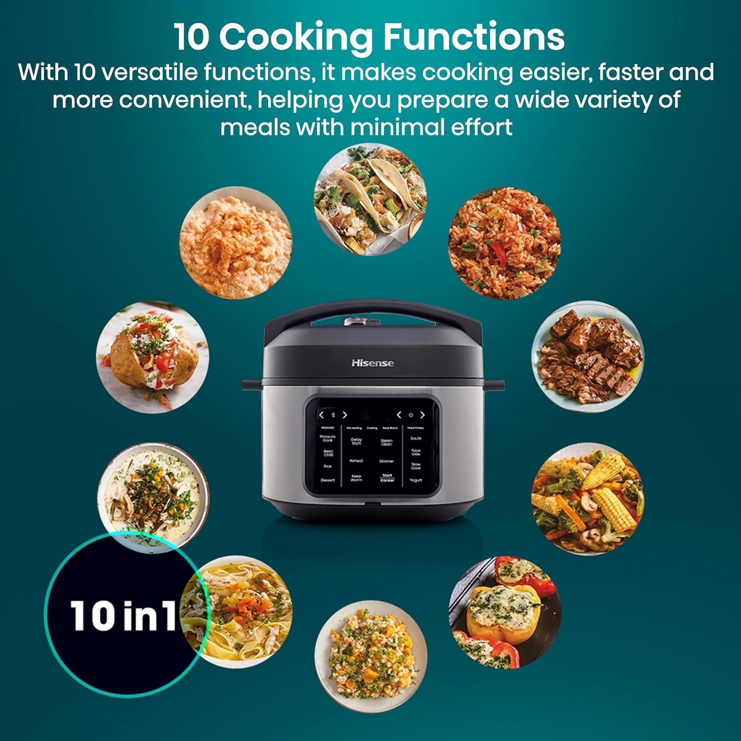 Hisense HMC6SBUK Electric Multi-Cooker 6L, 10 Programmes, Pressure Cooker, Slow Cooker, Rice Cooker, Food Steamer, Stainless Steel