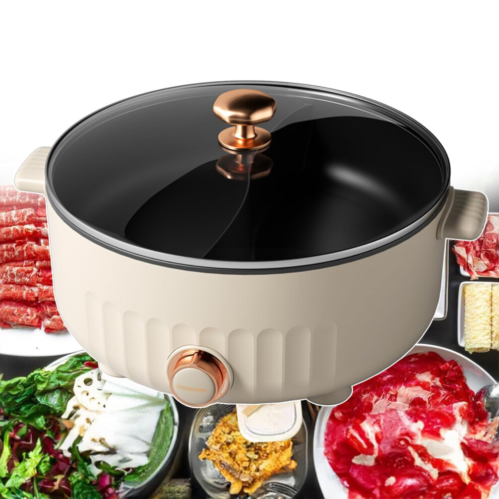 6L Electric Multi-Cooker Hot Pot with Divider, 3 Adjustable Speeds for 2-8 People, White Electric Cooking Appliance