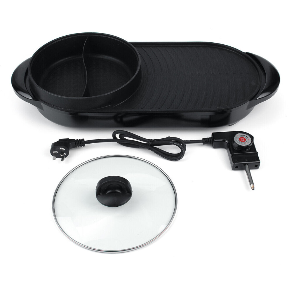 (Type A) 220V Electric Multi Cooker 2-IN-1 Hot Pot BBQ Oven Smokeless Non Stick Barbecue Roasting Baking Plate