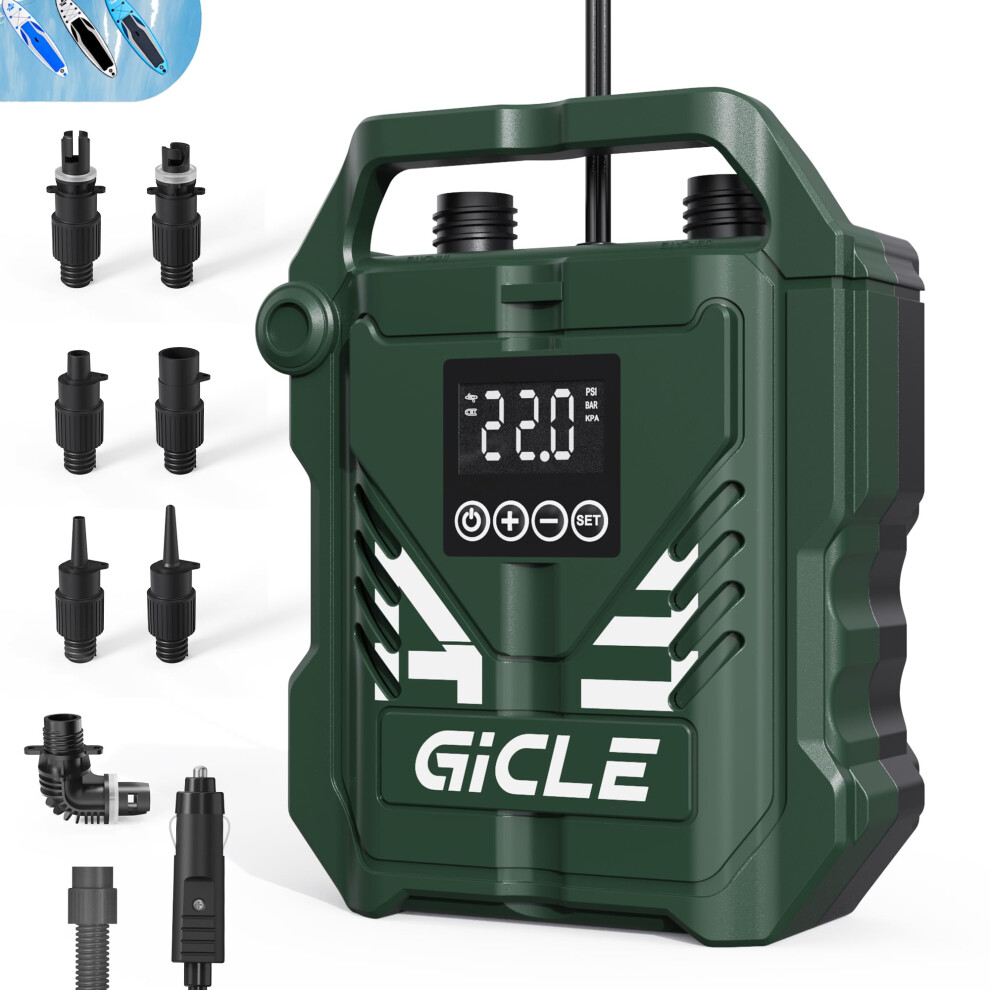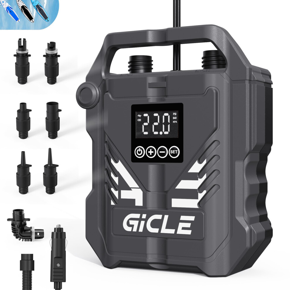 GICLE Paddle Board Pump Electric Portable with Dual Stage Inflation, High Pressure Air Pump for Paddleboard/Inflatable Bed/Mattress with 12V DC Car