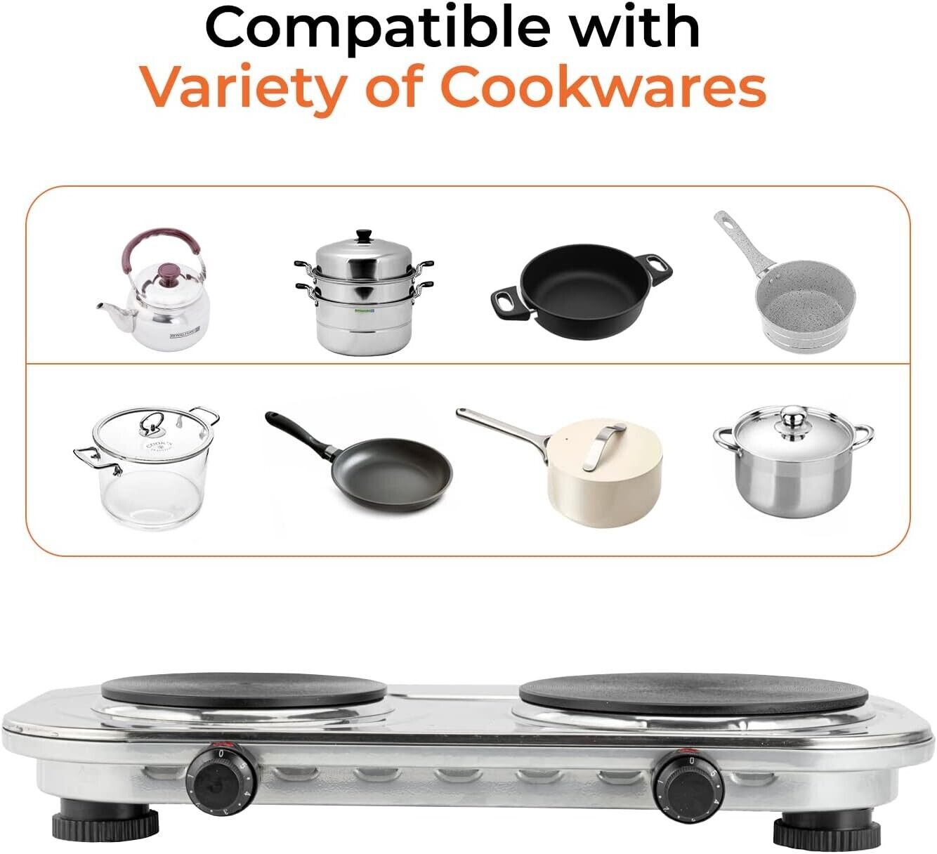 2500W Stainless Steel Double Hot Plate – Portable Electric Hob Double Burner