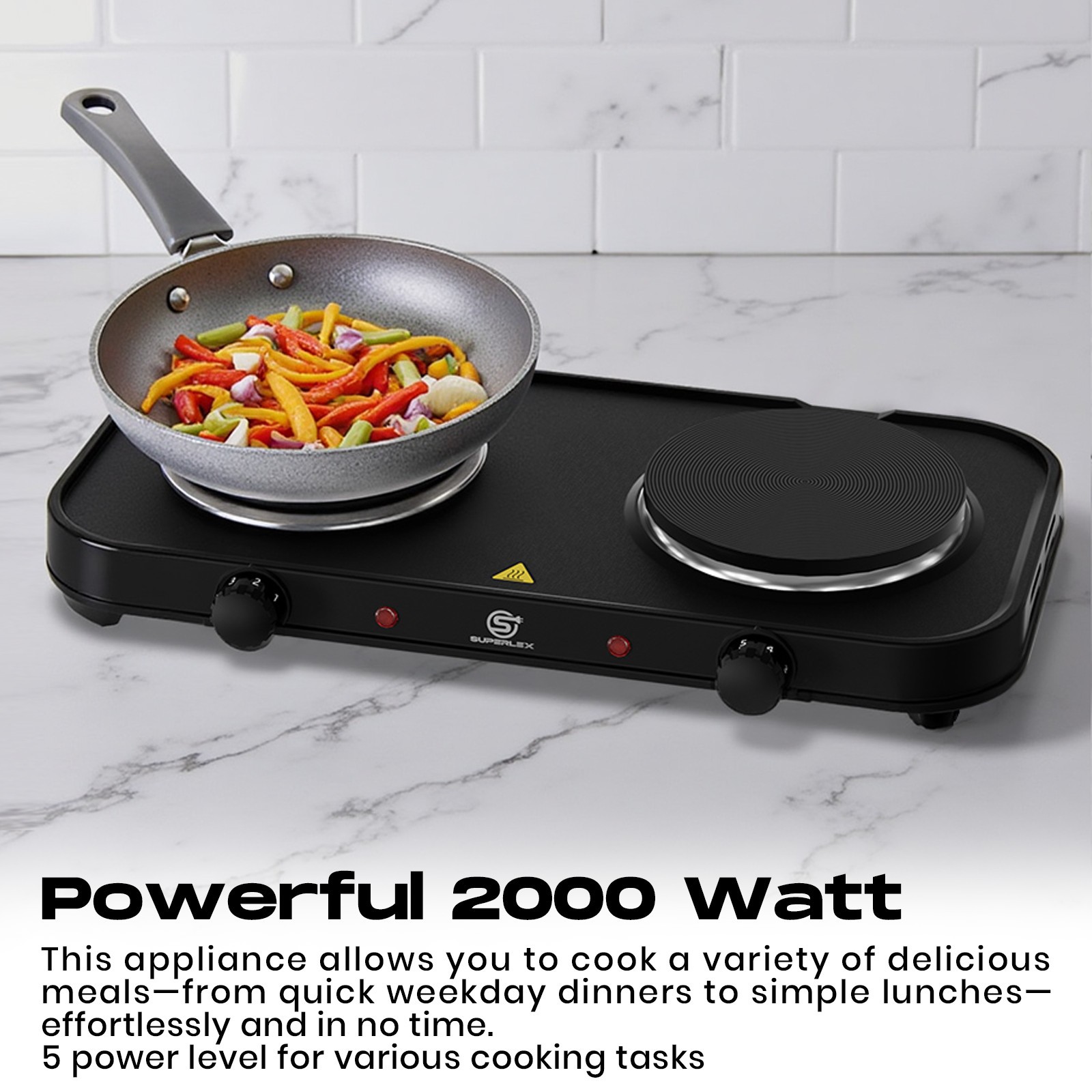 SUPERLEX Electric Hot Plate Portable Double Table Top Cooker Kitchen Hob Stove