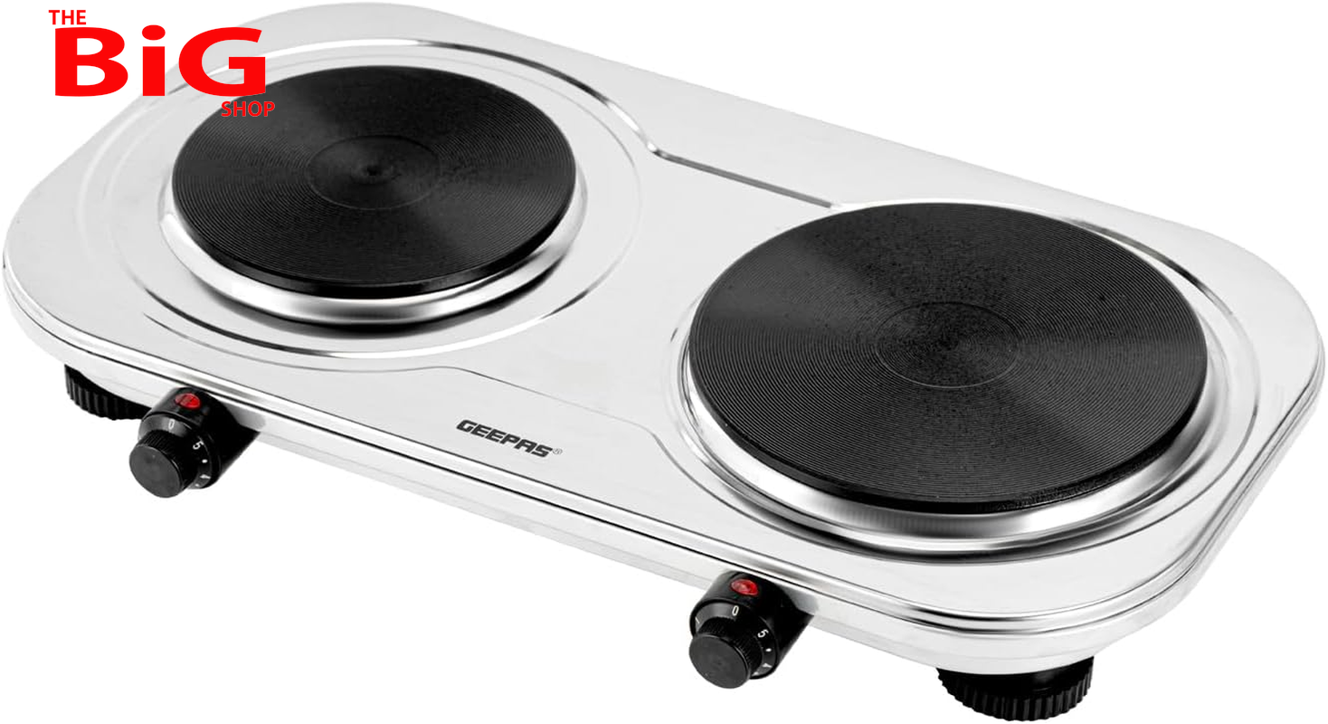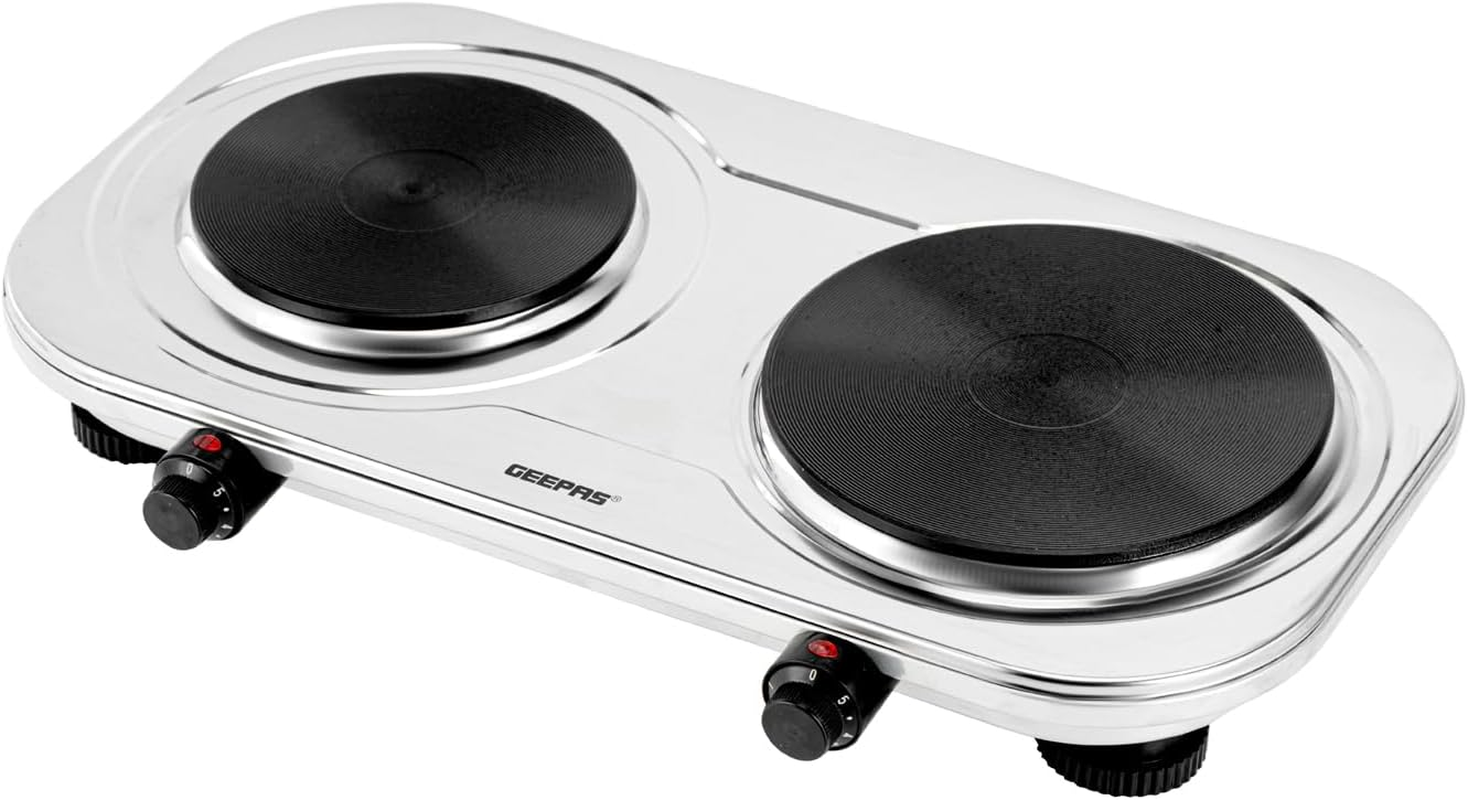 Geepas 2500W Stainless Steel Double Hot Plate – Portable Electric Hob Double Bur