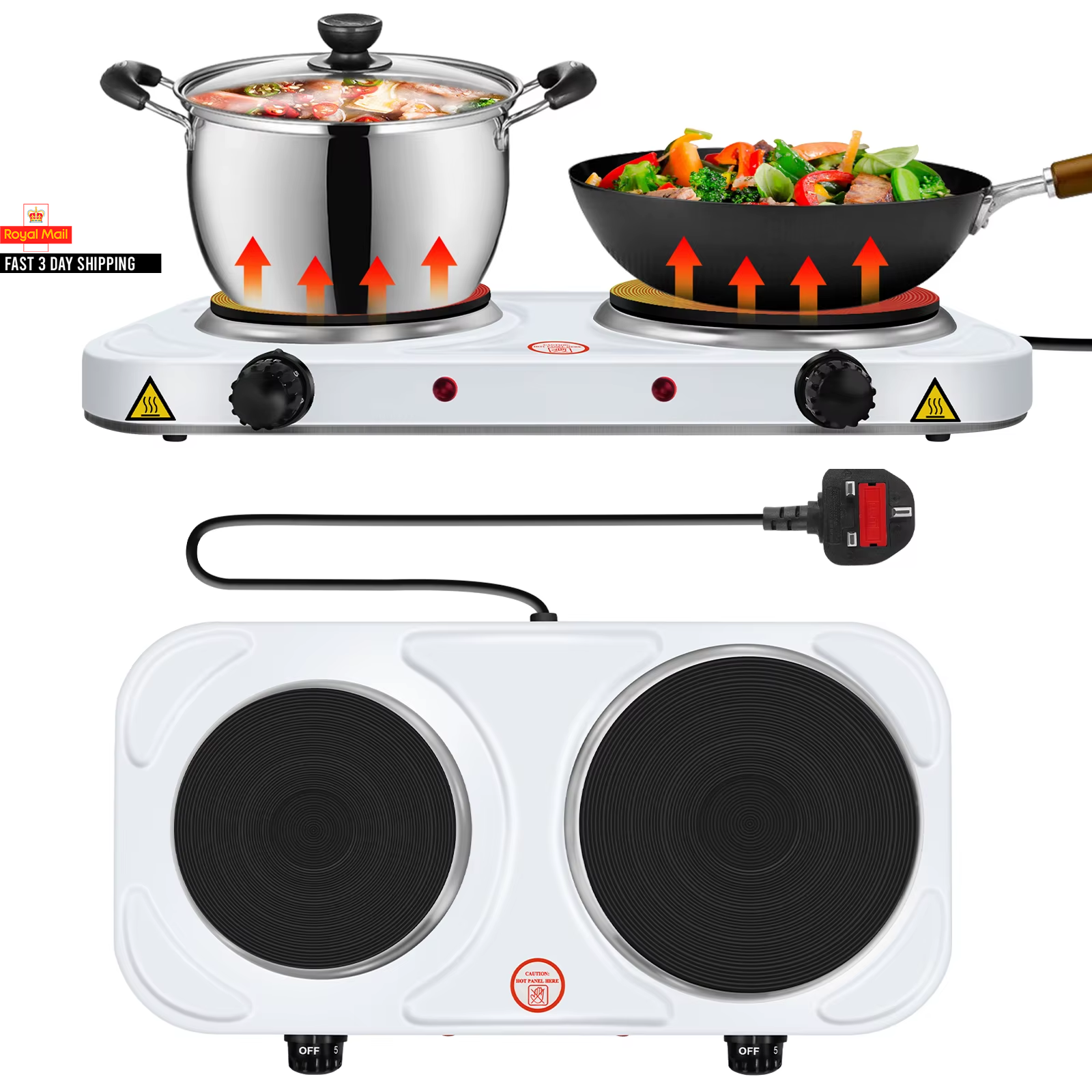 Electric Hob Portable Double Hot Plate 2 Ring Electric Burner with Variable Heat