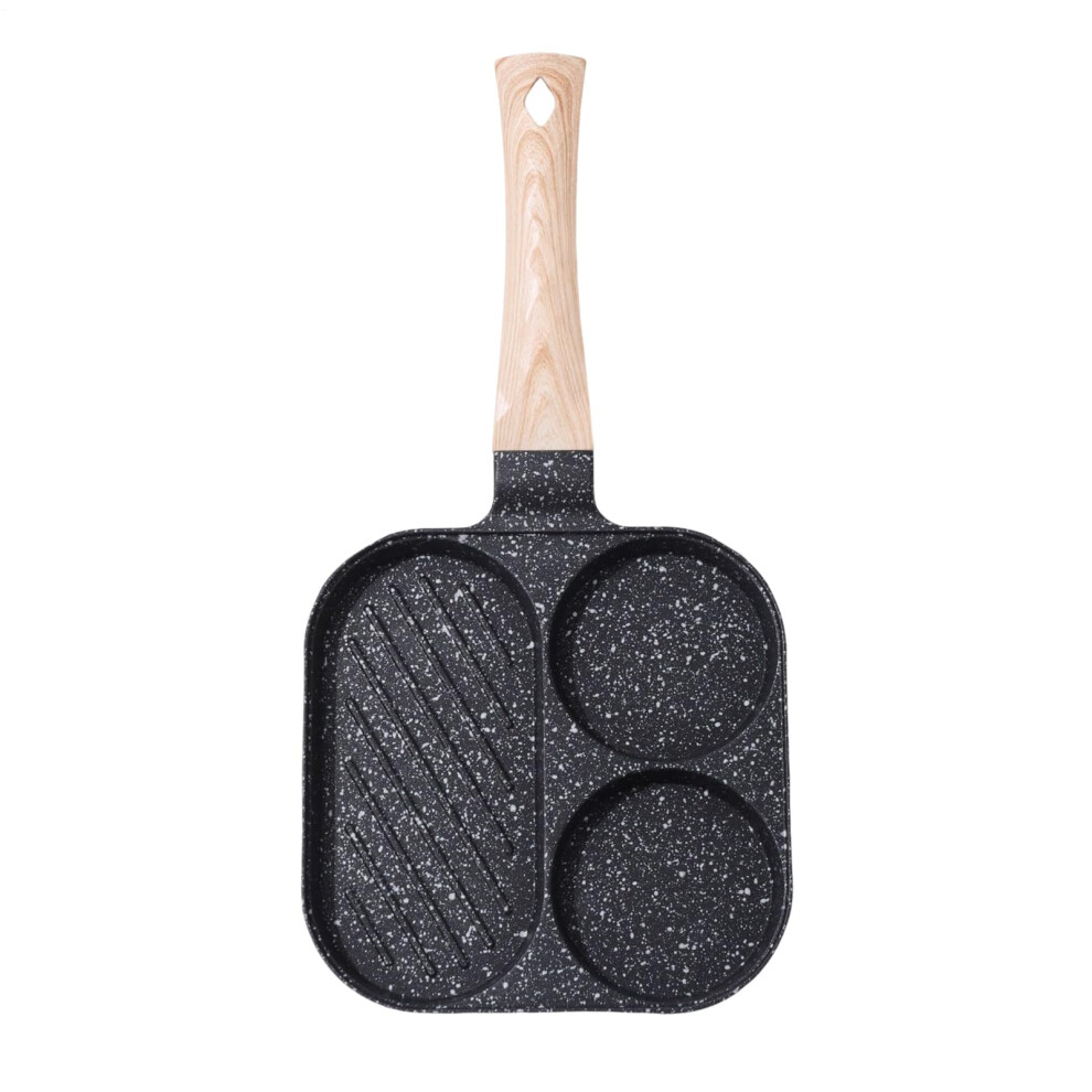 Breakfast Clamp NonStick Pancake Pan | 3Section Cookware For Induction And Electric Hob | Portable Black Pan