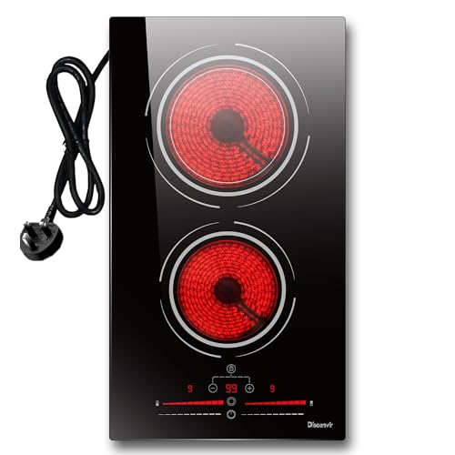 GIONIEN 30cm Ceramic Hob 2 Zone, 2 Rings Electric Cooker, Domino Portable Double Electric Hobs Built in a Worktop with 13Amp Plug, 2900W, GTM230TP