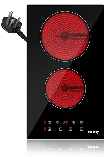 IsEasy Electric Ceramic Hob with Plug-in, Built-in & Portable Cooktop, 30cm 2 Zones 3000W