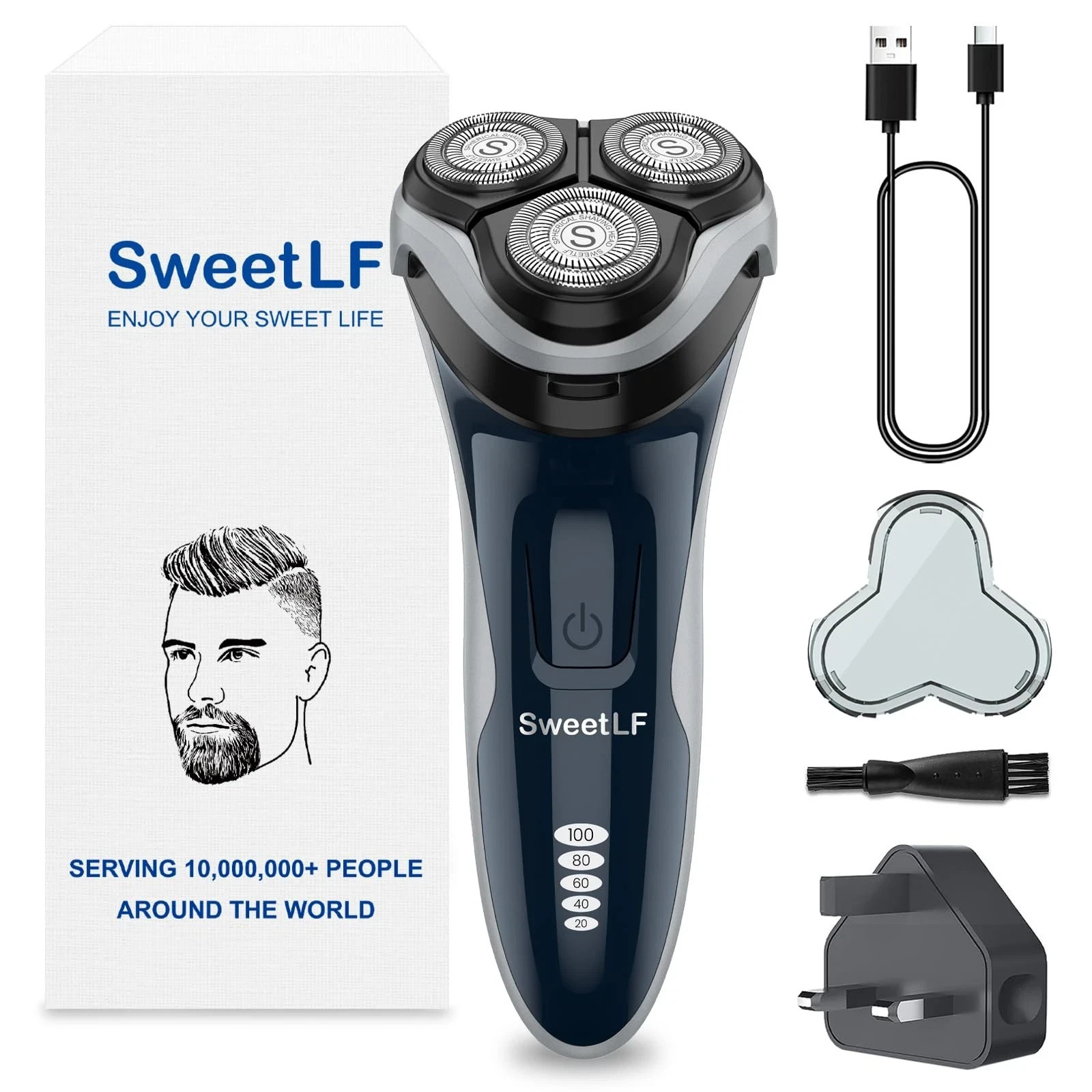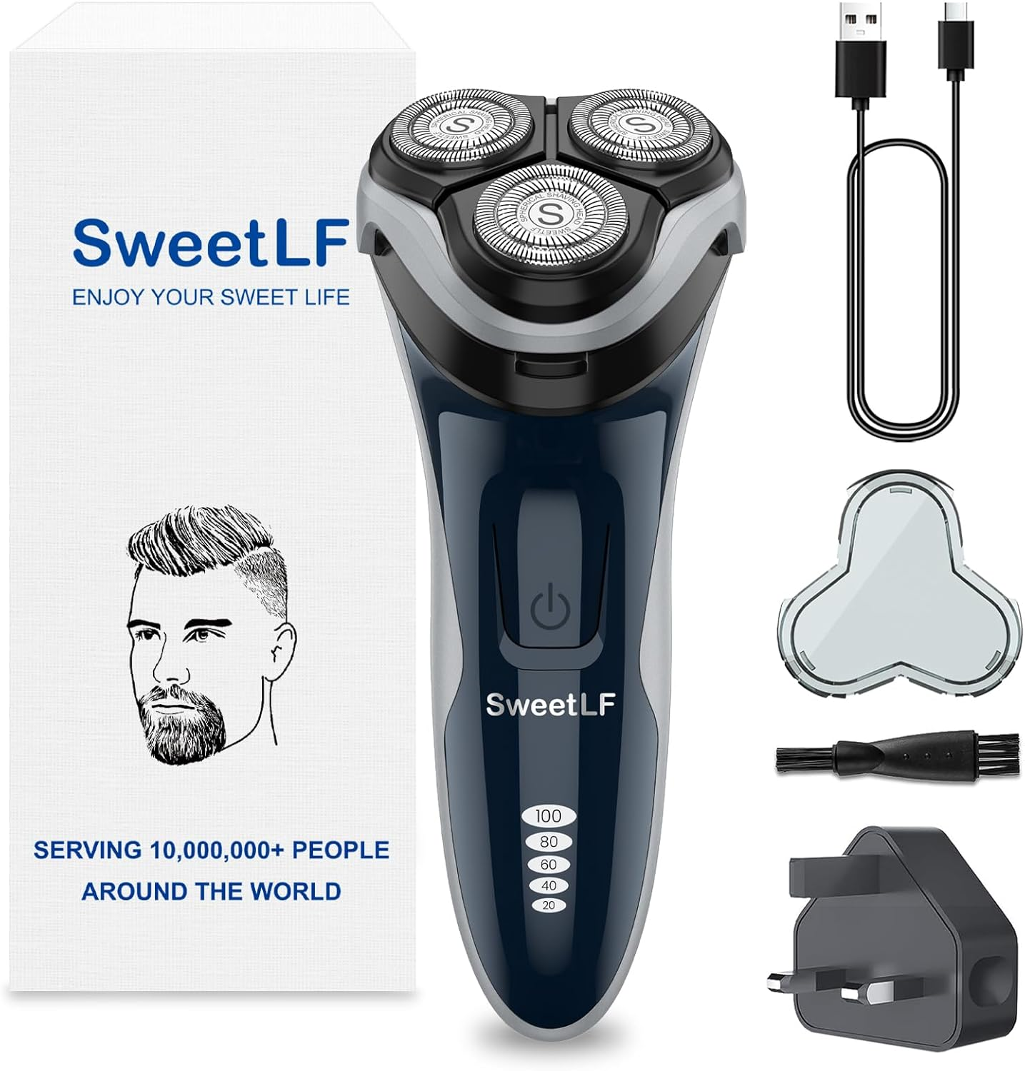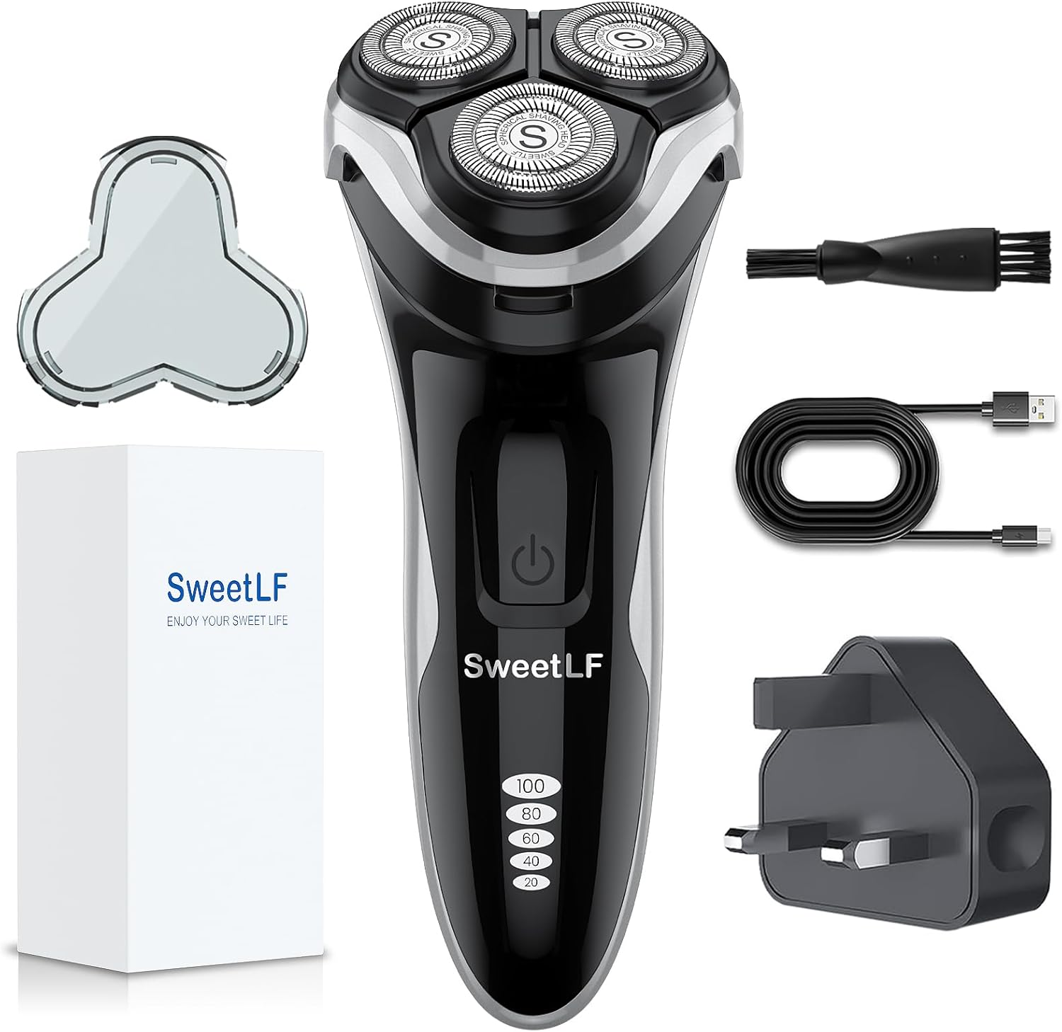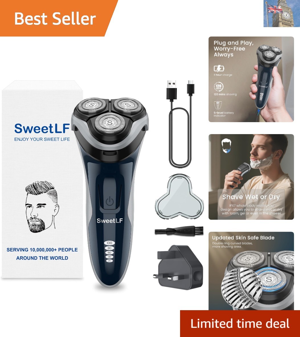 Sweetlf Electric Razor for Men, 120 Min Shaving, Fast UK Adapter (1H Charging),1