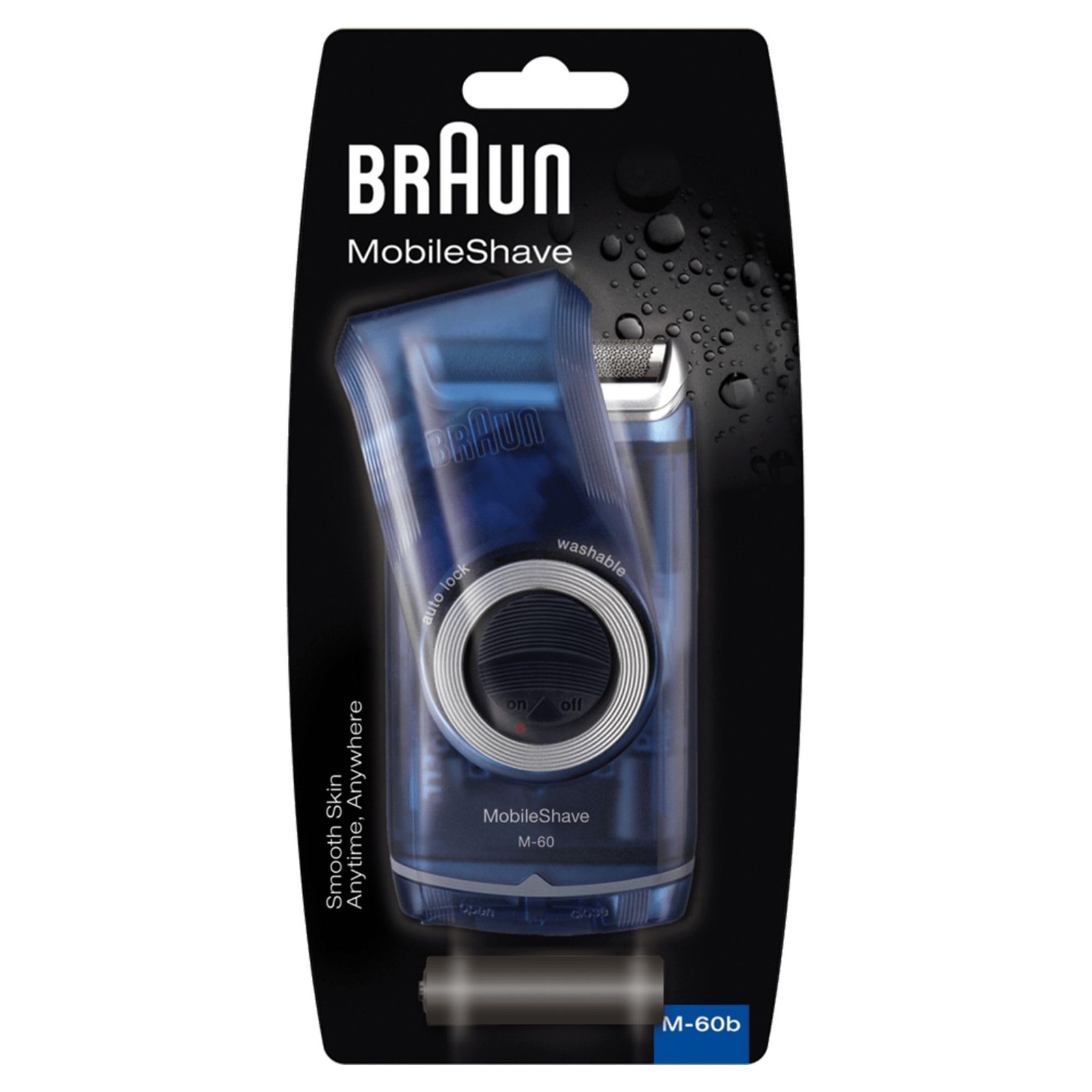 Braun PocketGo Mobile Shave Electric Travel Shaver, Electric Razor for Men For On The Go, Fully Washable, Portable Shaver With Travel Lock, M60, Blue