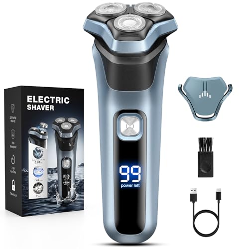 Electric Razor for Men: Rechargeable Beard Shaver-IPX7 Waterproof - Rotary Shavers with Pop up Trimmer and Travel Lock -Led Display - Close Shave(Deep Blue)