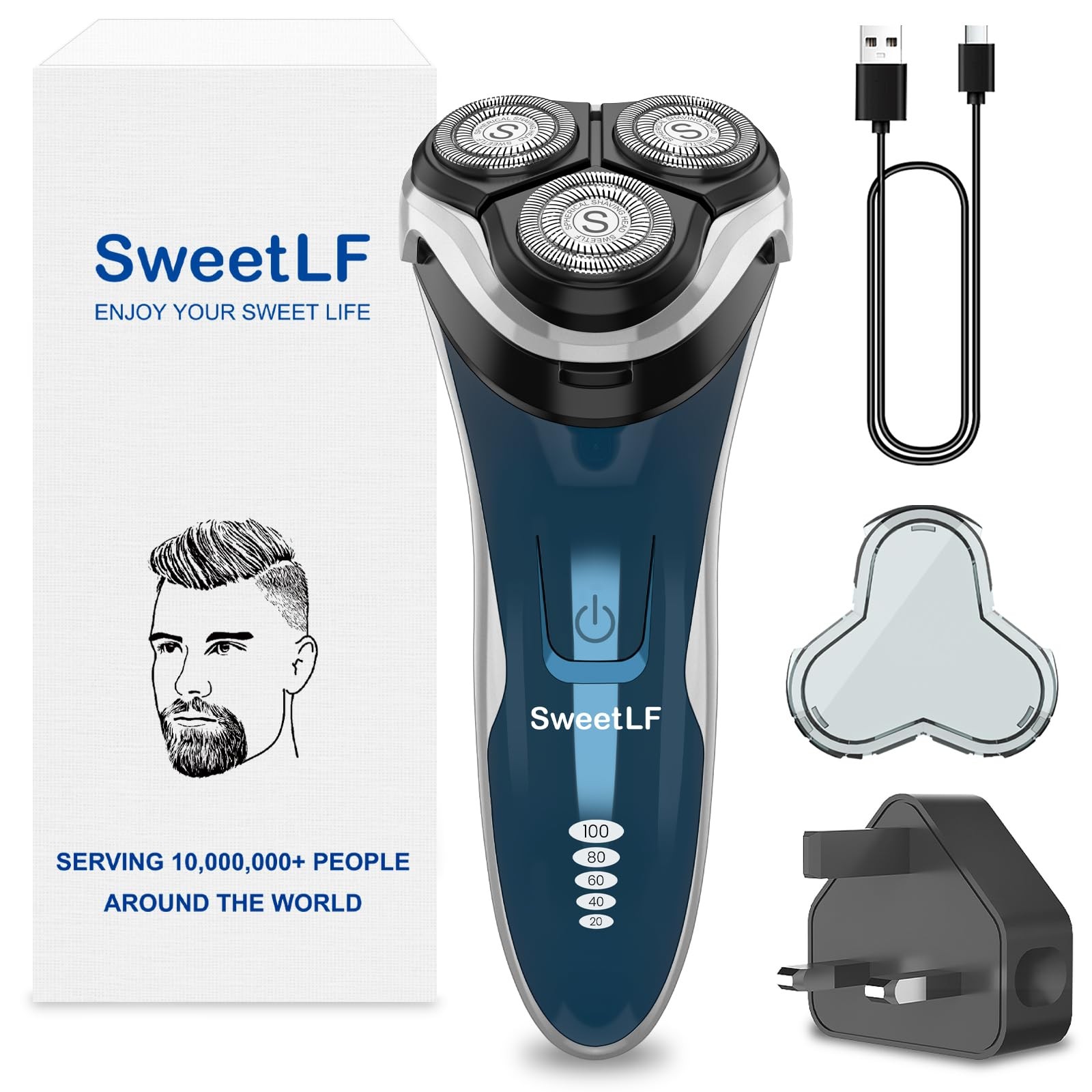 SweetLF Electric Razor for Men, 120 Min Shaving, Fast UK Adapter (1H
