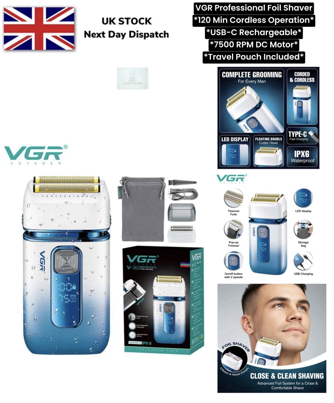 VGR Electric Razor Foil Shaver Men Cordless Shaving Machine Skin Fade Barber Kit
