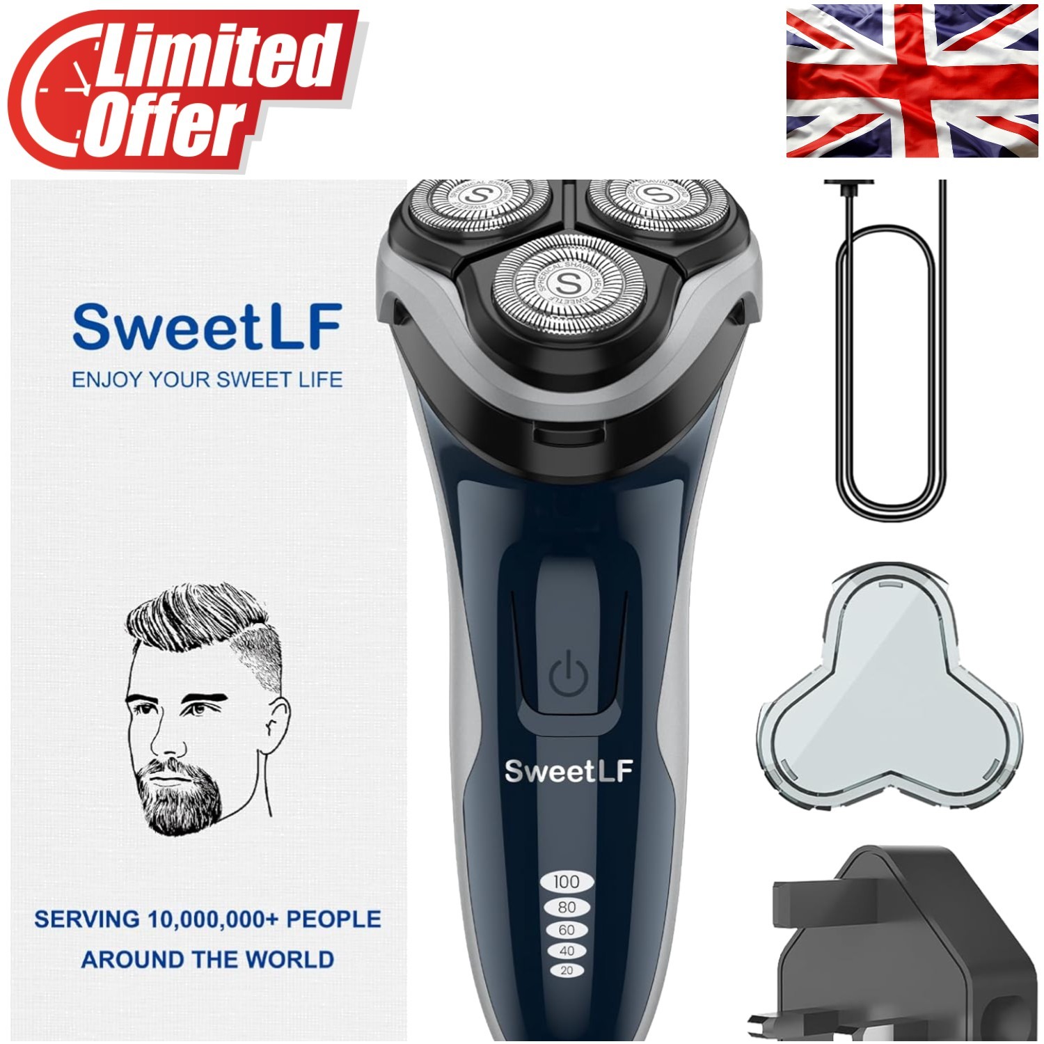 SweetLF Electric Razor for Men 120 Min Shaving Fast UK Adapter (1H Charging)