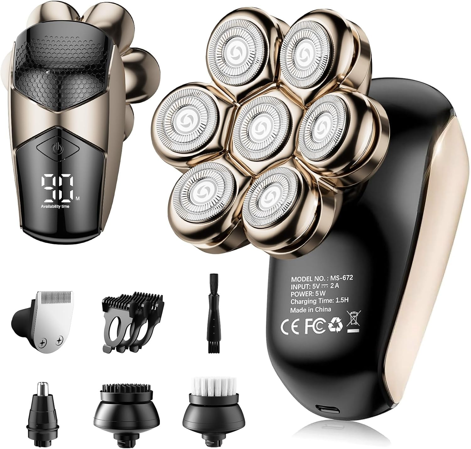 Bald head shaver 7D 5-in-1 Cordless Hair Trimmer Razor Electric For Men Wet Dry