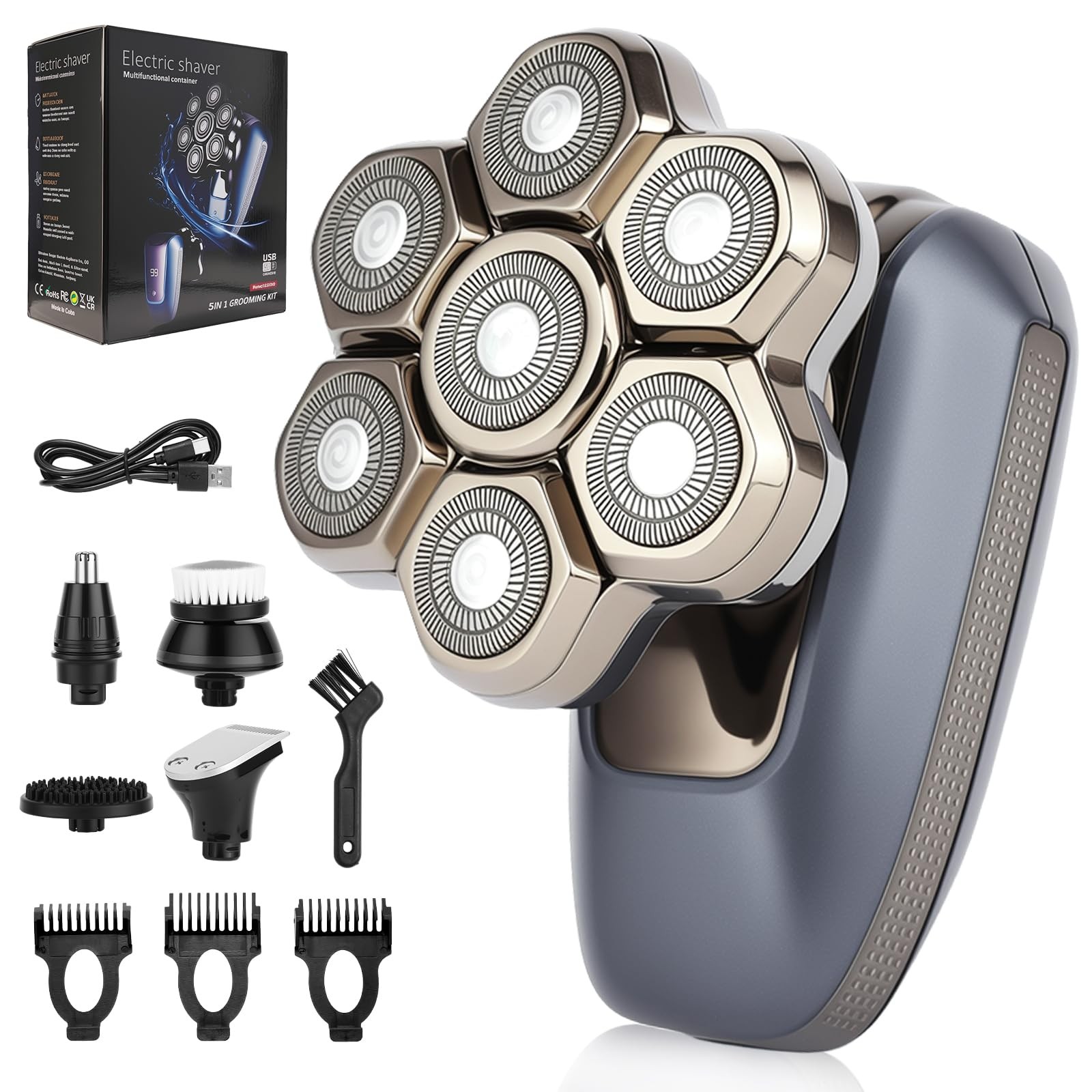 Head Shavers for Men 5 in 1 Bald Electric Razor for Men Skull Shaver with 7D