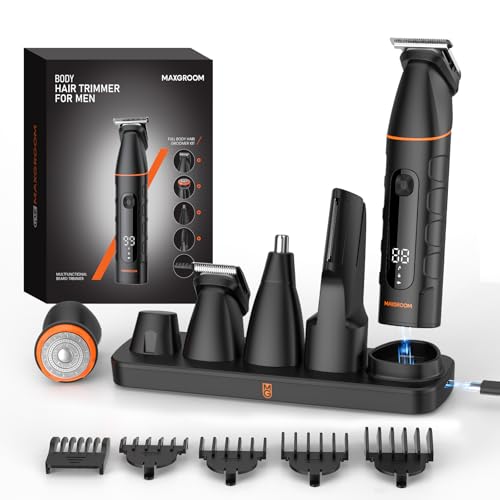 MAXGROOM Electric Beard Trimmer Men, All in One Multi-Functional Beard Grooming Kit, 120 Mins Runtime Rechargeable Body Shavers for Men, 7000RPM Efficient Electric Razor Men for Face, Ball, Nose, Ear