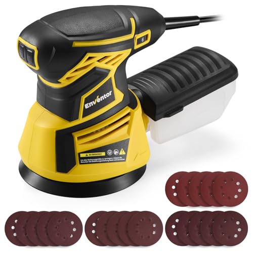 Enventor Electric Orbital Sander, 350W 6000-13000RPM Random Orbital Sander, 6 Variable Speeds, with Dust Collection Box, 125MM 20PCS Sandpapers for Wood Sanding and Polishing