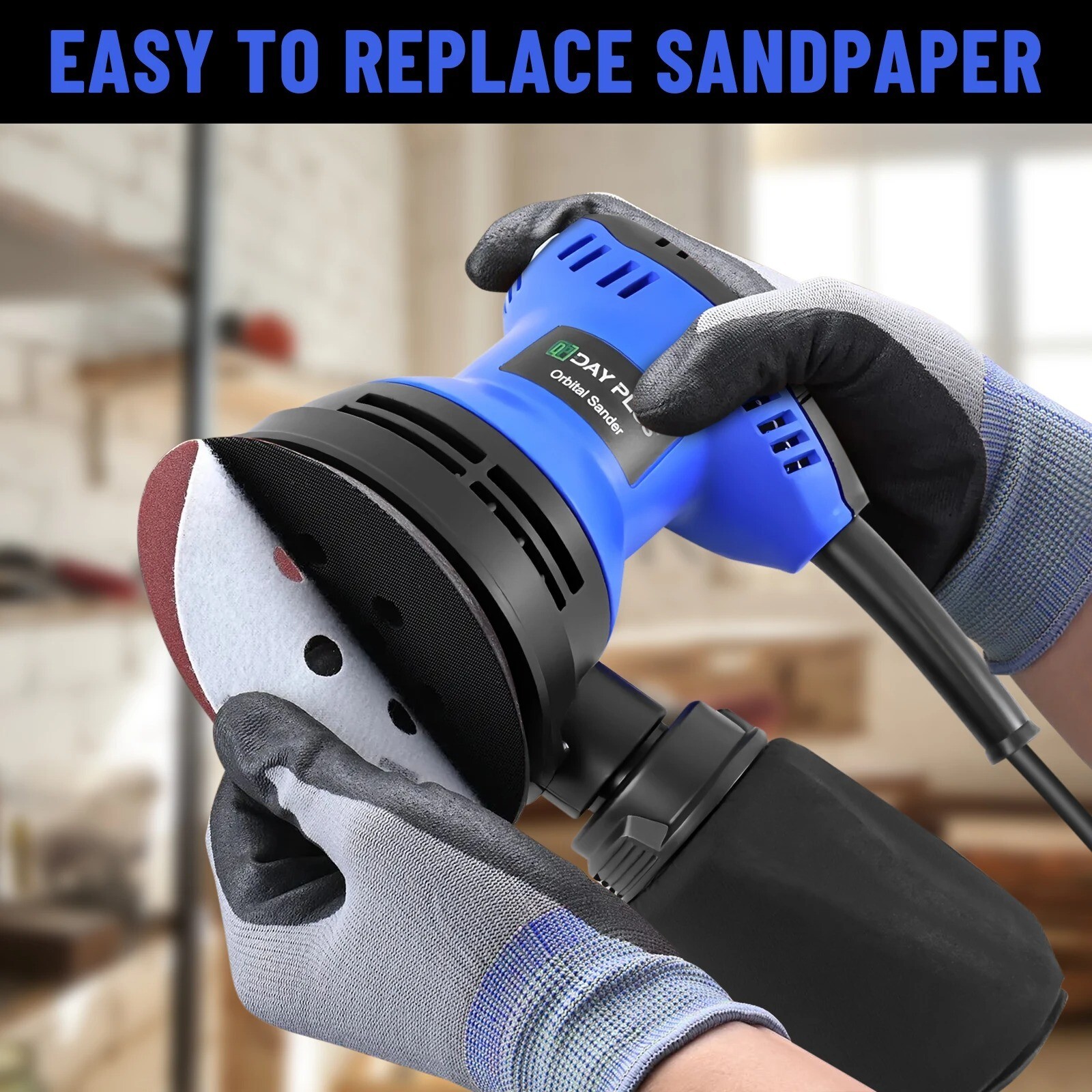 HYCHIKA Orbital Sander, 300W 13000RPM Random Orbital Sander, 6 Variable Speeds, 125mm 12Pcs Sandpapers, Electric Sander with Dust Collection Ideal for Sanding, Polishing Wood, DIY, Home Improvements