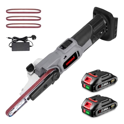 WODHMIEY Cordless Belt Sander 16.8V Electric File with 2 Batteries & 15 Sanding Belts 80–1000 Grits Adjustable Angle Powerful Motor, for Wood Metal DIY Furniture Car Parts Detail Grinding in Blow Case