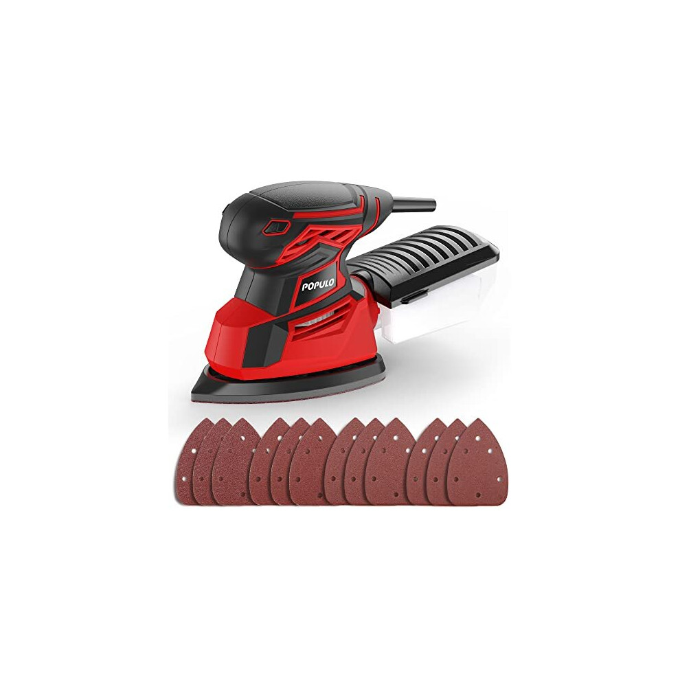 POPULO Electric Mouse Sander, 130W 14000RPM 230V Detail Sander with 12Pcs Sandpapers, Hand Sanders for Wood with Dust Collector, Compact Sanding
