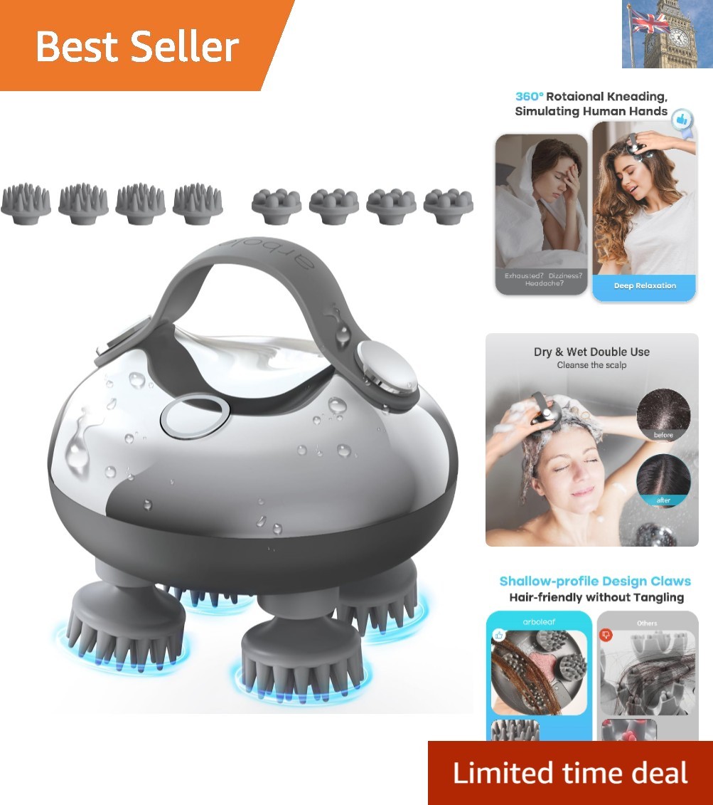 arboleaf Electric Scalp Massager, Waterproof Head Massager with Replacement Silicone Heads for Hair Growth, Handheld Massager for Head Body Relaxation, Stress Relief and Hair Care, Gifts for Women Men