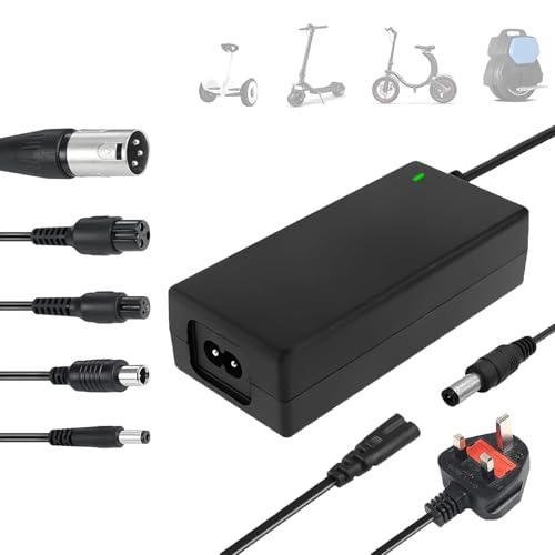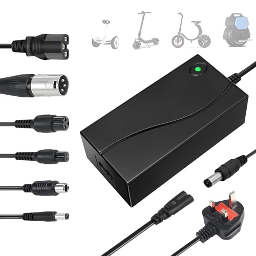 Electric Scooter Charger, 42V 2A Hoverboard Charger UK 3 Pin with 6 Connections for 36V Li-ion Batterie, for Mobility Scooter, Electric Bike, e Balance Scooter