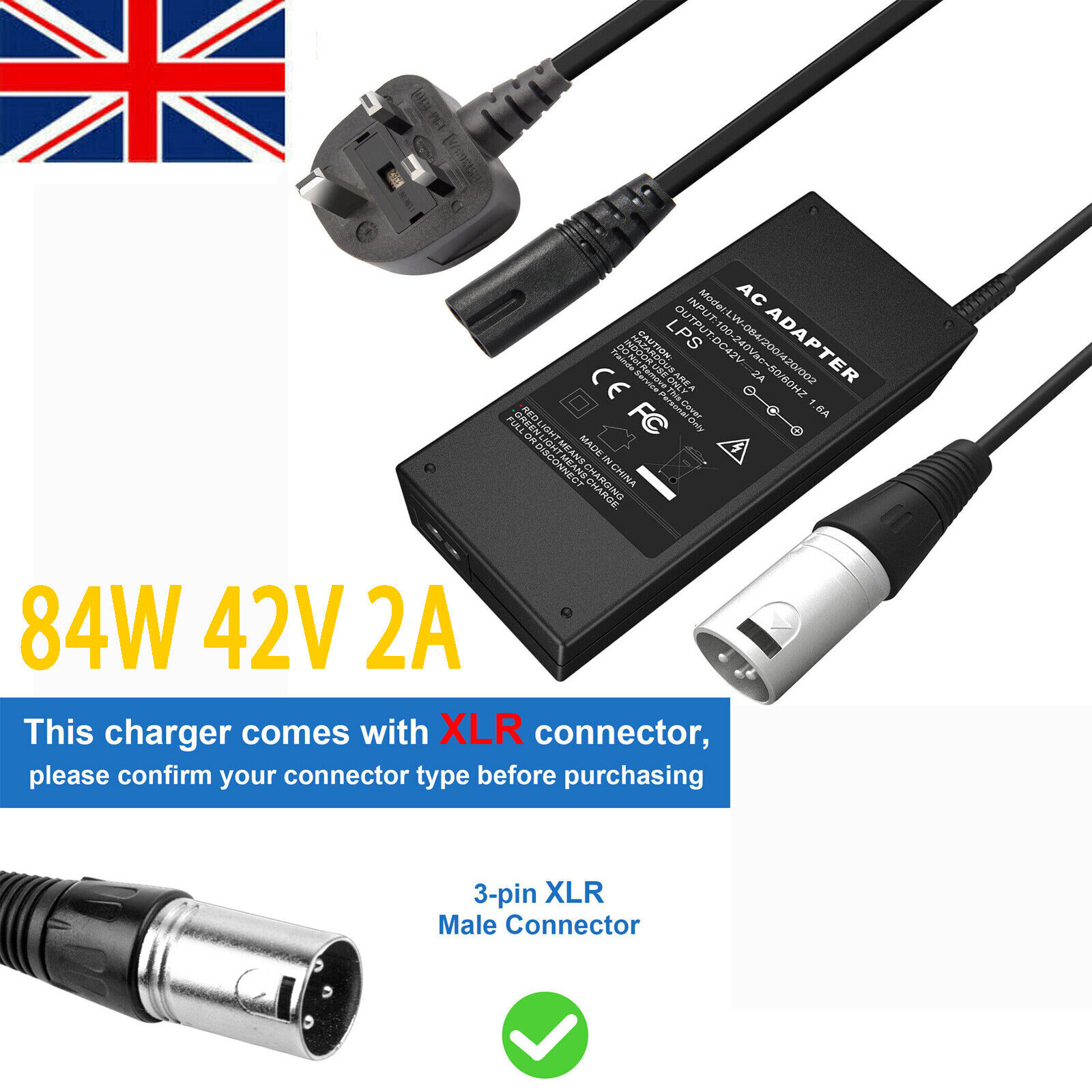 42V Li-ion Battery Charger For Electric Bike 36V Male 3 Pin XLR UK Plug Scooter