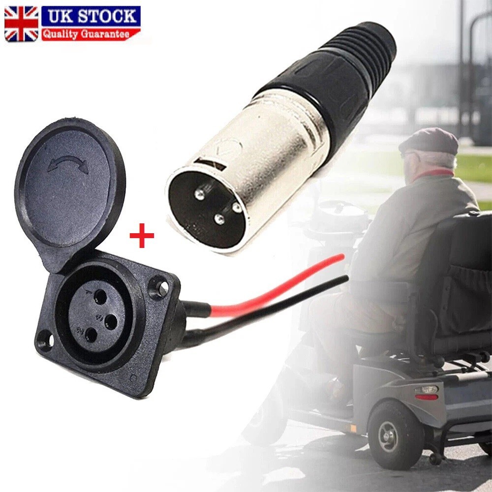 3 pin Electric E scooter Wheelchair Charging Socket Plug Connecter Plug UK