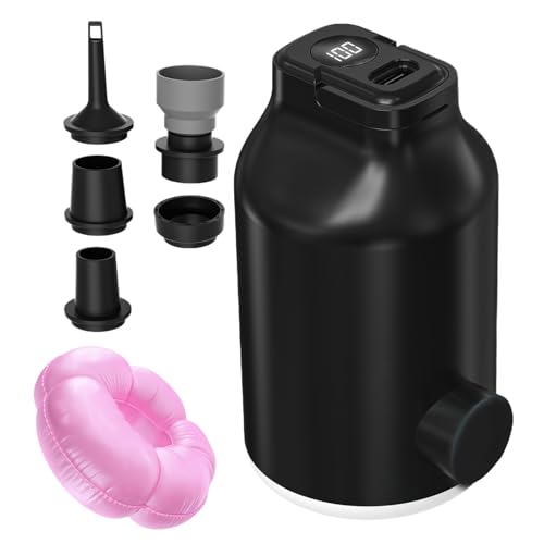 Air Pump for Inflatables - Portable Electric Pump for Inflatables with LED Light and 5 Nozzles - for Camping, Boating, Pools, Shops, Travel, Kayaks, Swimming and Family