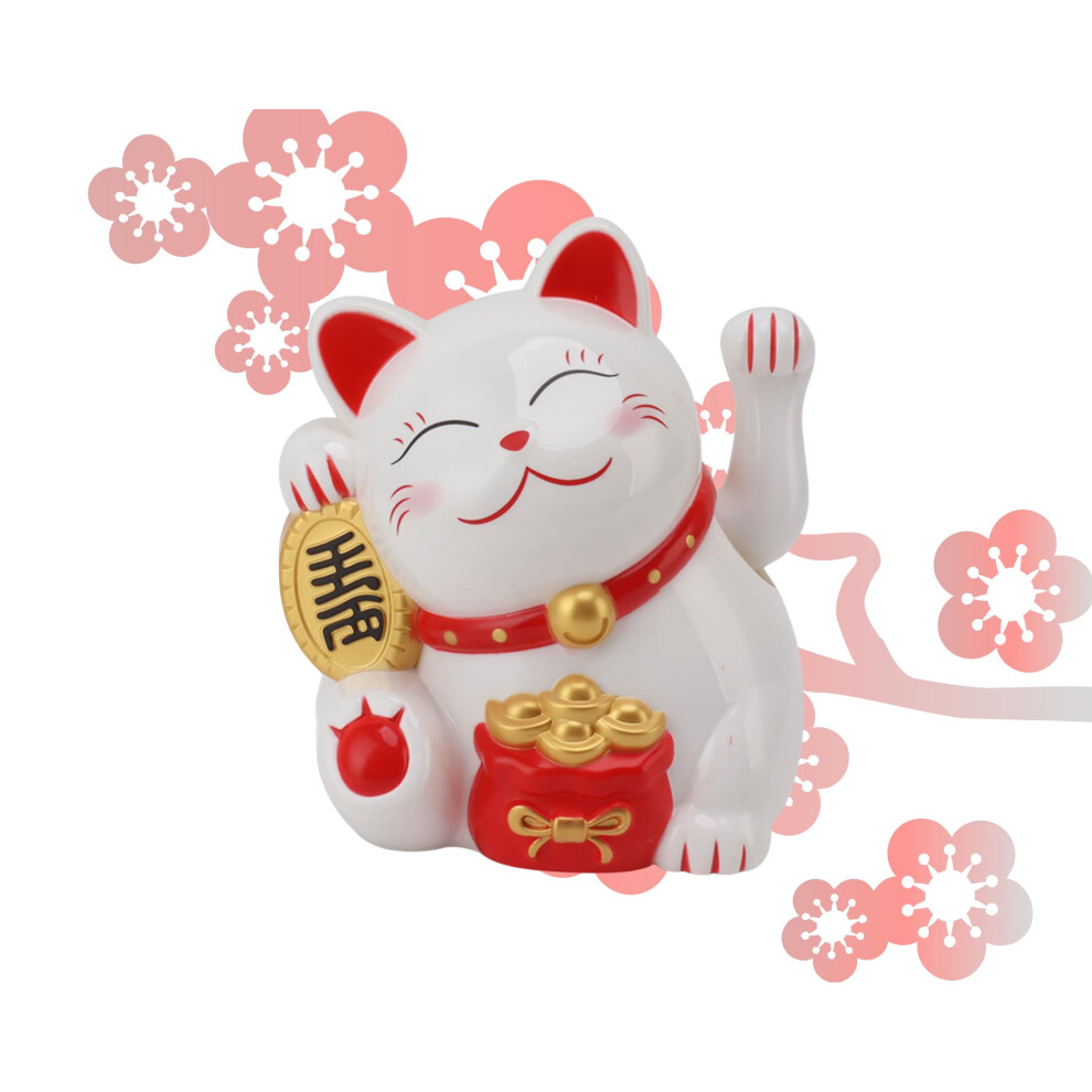 Lucky Fortune Cat 5.5-Inch Electric Waving Arm White MLY11020-1 Feng Shui Decoration For Shops Living Room Desk