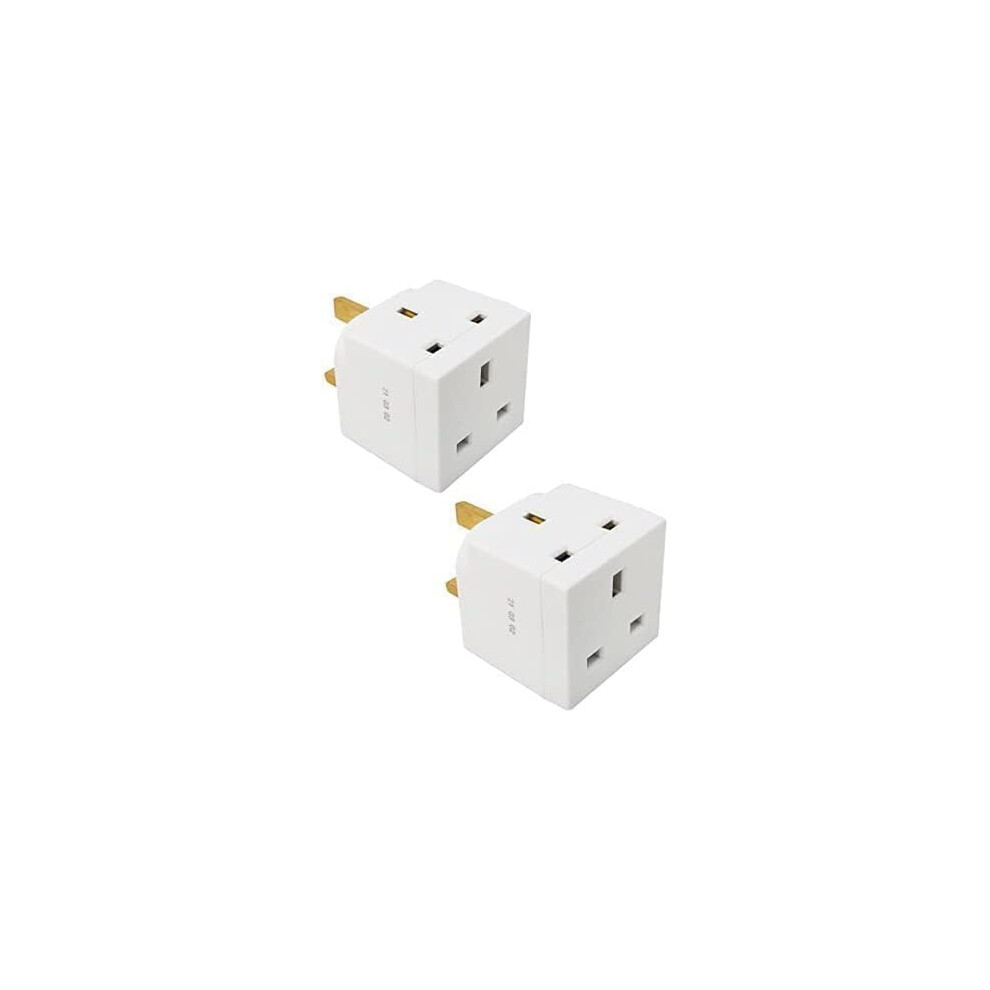 2 Way 3 Pin Power Adapter Plug Splitter - Cube Electric 13A Multi Wall Plug Extension Double Socket UK (PACK OF 2 Adapter)