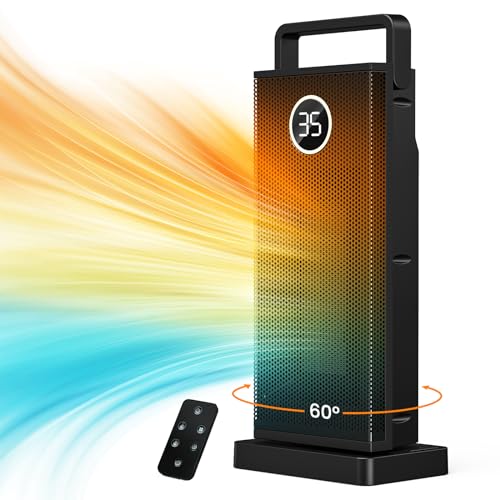 Electric Space Heater, 1500W PTC Ceramic Heater 70 Degree Oscillation, Electric Heater with Timer and Thermostat for Home Low Energy, Remote Control, 1-12H Timer (Round)