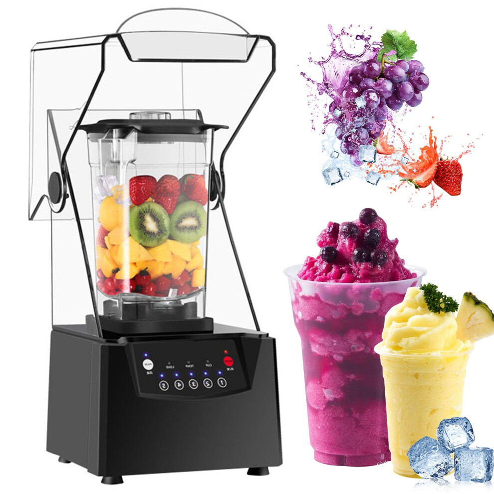 Commercial Blender Ice Crusher Electric Stand Mixer With 5 Presets Sound Enclosure For Ice Crushing Shakes And Smoothies