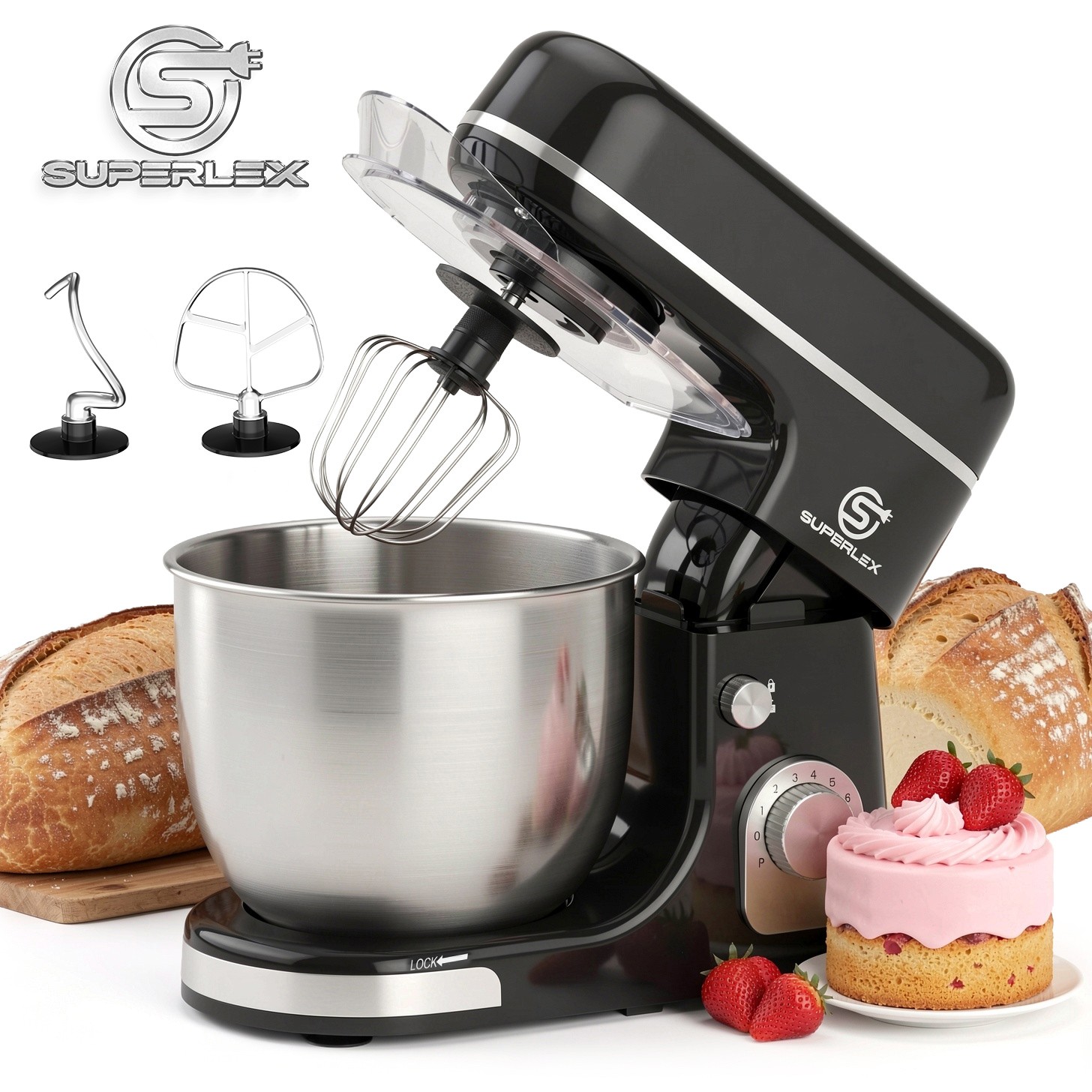 SUPERLEX 1300W Electric Food Mixer Stand Stainless Steel Mixing Bowl Dough Hook