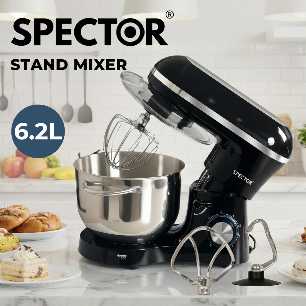 Spector Electric Stand Mixer 6.2L Stainless Steel Mixing Bowl 1400W 6 Speeds