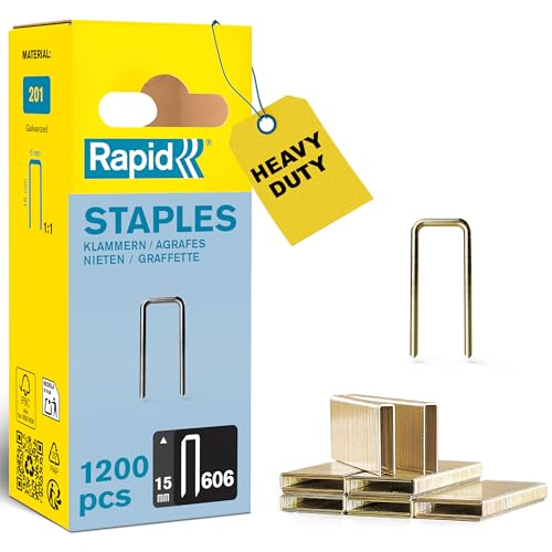 Rapid High-Performance Staples for Dense Materials, Narrow Crown No. 606, Leg Length 15mm, Staple Gun Staples, Resin-Coated Galvanised Steel, 1200 Pieces, Narrow Blister (40109528)
