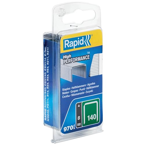Rapid High-Performance Staples for Insulation, Thin Plastics, Cardboard and Carpets Flatwire No. 140, Leg Length 8mm, Staple Gun Staples, Galvanised Steel, 970 Pieces, Narrow Blister(40109514), Silver