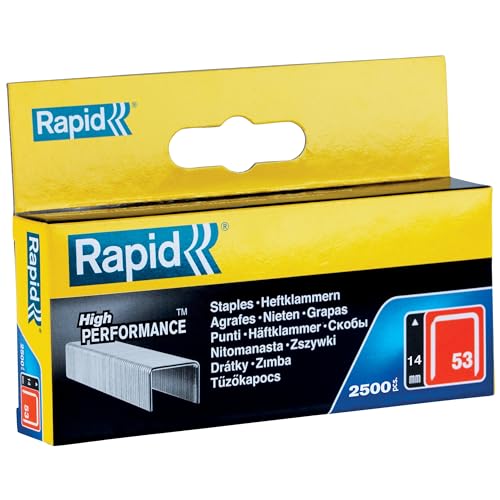 Rapid High-Performance Staples for Textiles, Finewire No. 53, Leg Length 10mm Staple Gun Staples, Galvanised Steel, 2500 Pieces, Boxed (11858825)