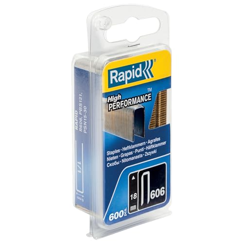Rapid High-Performance Staples for Dense Materials, Narrow Crown No. 606, Leg Length 18mm, Staple Gun Staples, Resin-Coated Galvanised Steel, 600 Pieces, Narrow Blister (40109529)