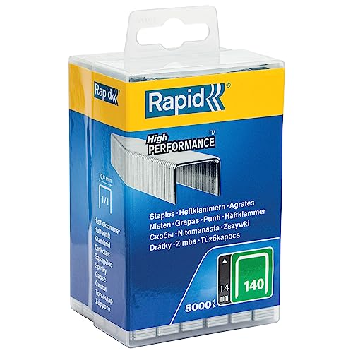 Rapid High-Performance Staples for Insulation, Thin Plastics, Cardboard and Carpets Flatwire No. 140, Leg Length 12mm, Staple Gun Staples, Galvanised Steel, 5000 Pieces, Plastic Box (40303091)