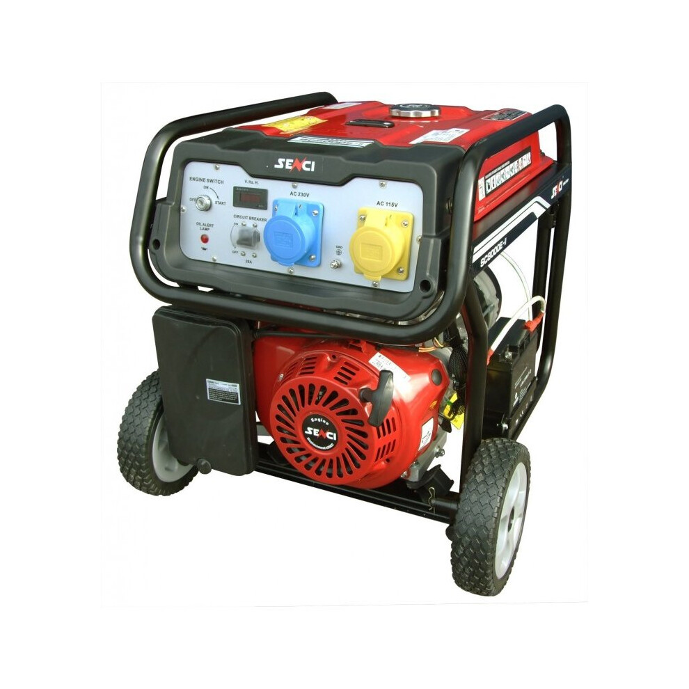 SENCI SC8000-II GENERATOR 7.0kW, Electric Start, Wheel Kit - Petrol Frame Mounted