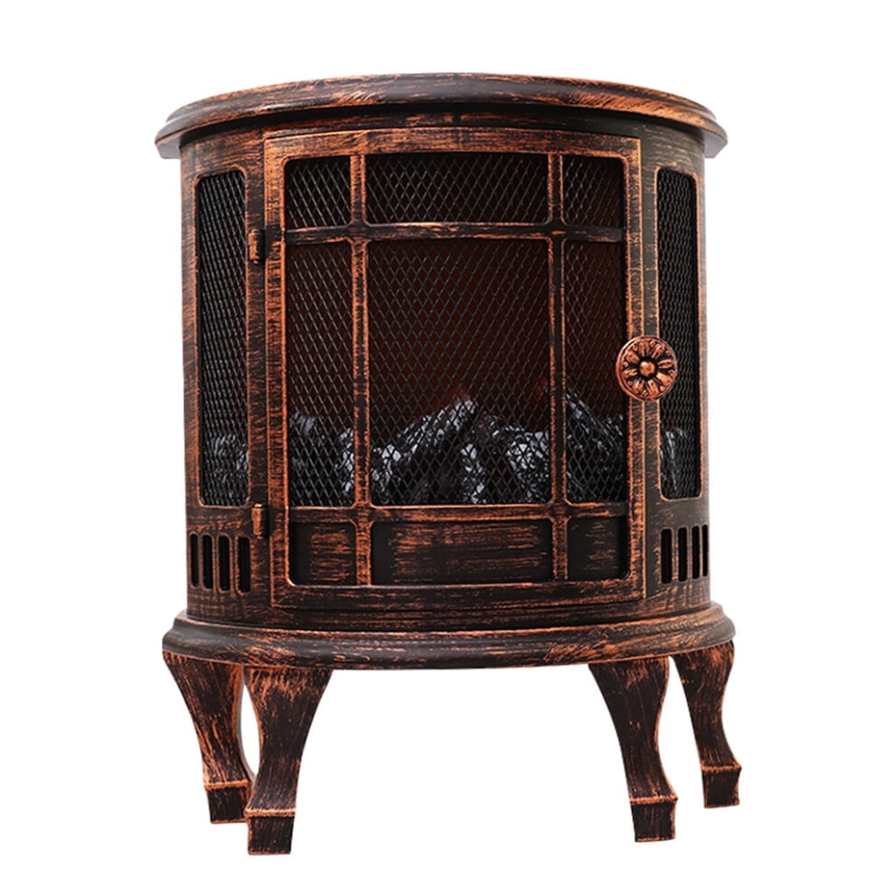 1 pcs Freestanding Electric Fireplace Stove Heater with 3D Flame Effect for 1,000 Sq. Ft, Bronze
